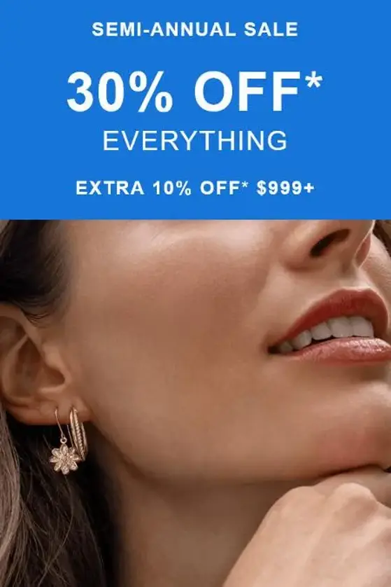 * Off ticketed price. Excludes Adore® Natural and Lab-Created Diamond solitaire rings, Bulova Frank Sinatra, Bulova Marc Anthony, Bulova Archive Series, Casio, Movado, Tissot, and select JBW watches, smartwatches, watchbands, loose diamonds and gemstones, Le Vian® Vault online collection, clearance, closeouts, previously owned merchandise, ear piercing merchandise, specially priced merchandise, special events, custom items, jewelry cleaning items, charity items, protection plans, repairs and services, gift cards, and previous purchases. Offer may exclude certain new items, designer brands, and licensed or exclusive collections. Promotions, prices, styles, and availability may vary by store and online. Extra 10% off with $999+ offer is not combinable with any coupons, but is combinable with 30%-50% off Everything promotion prices. Minimum purchase amounts do not include taxes and shipping. See Jewelry Expert for details. Offers valid through 10/13/25.