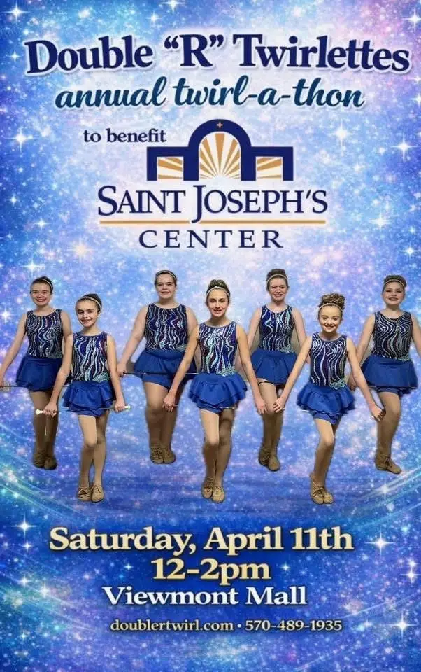 Join us for the 46th Annual Twirlathon to benefit St. Joseph's Center on Saturday, April 11th from 12pm-2pm.